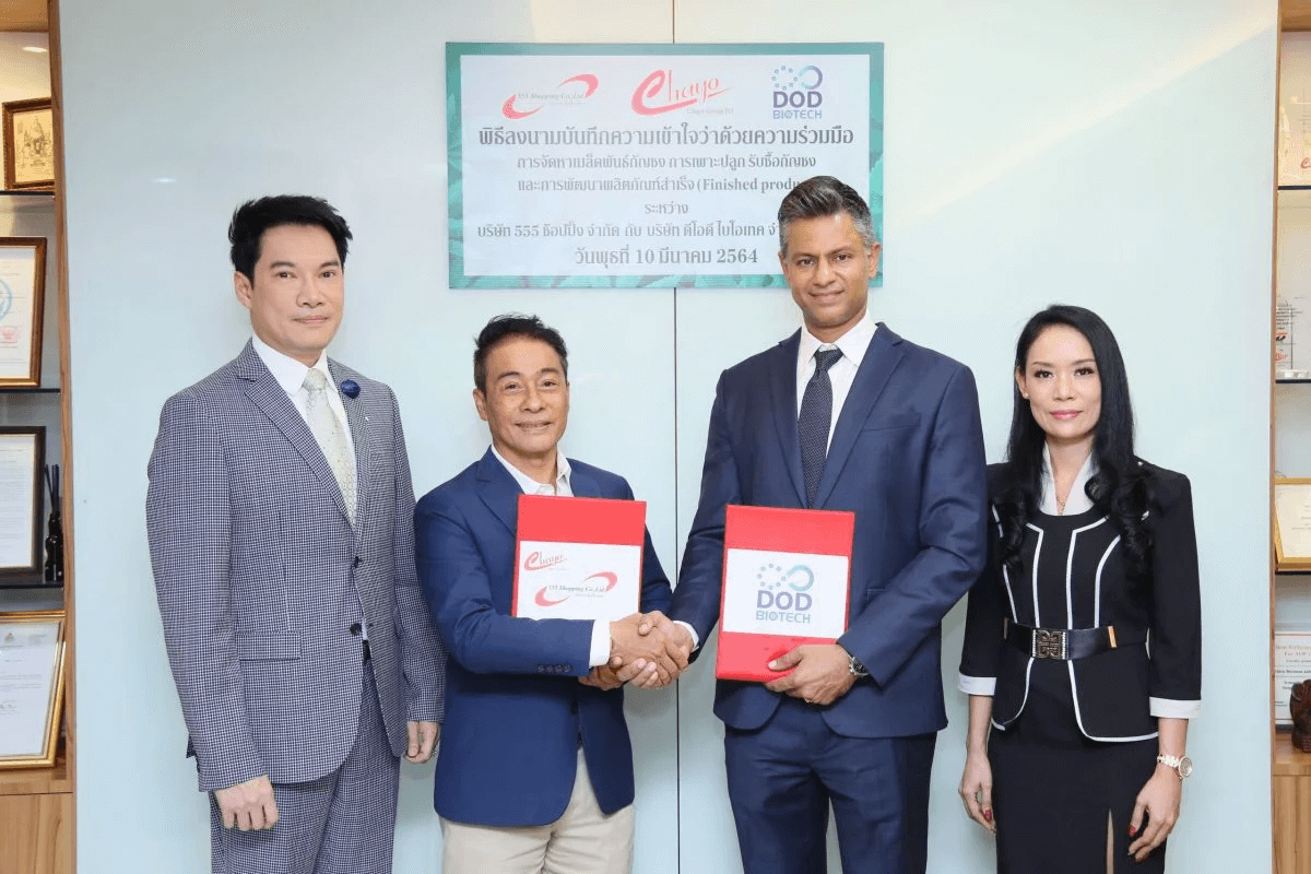 ล่าสุด เมื่อวันที่10 มีนาคม 2564 ที่ผ่านมา บมจ.ดีโอดี ไบโอเทค และ บริษัท 555 ช้อปปิ้ง จำกัด ซึ่งเป็นบริษัทย่อยของบริษัท ชโย กรุ๊ป จำกัด (มหาชน) ได้มีการ บันทึกความเข้าใจว่าด้วยความร่วมมือในการจัดหาเมล็ดพันธุ์กัญชง การเพาะปลูกและรับซื้อกัญชง รวมถึงการพัฒนาผลิตภัณฑ์สำเร็จ (Finished Product) ร่วมกันเพื่อนำไปสู่การขึ้นทะเบียนผลิตภัณฑ์สำเร็จออกสู่ตลาดทั้งในและต่างประเทศ ทั้งนี้จากความร่วมมือดังกล่าวถือเป็นการที่สร้างประวัติศาสตร์ของ 2 บริษัทจดทะเบียนในตลาดหลักทรัพย์ ที่จะร่วมมือกันตั้งแต่ต้นน้ำจนถึงปลายน้ำ นับตั้งแต่การจัดหาเมล็ดพันธุ์กัญชง - การเพาะปลูก - รับซื้อกัญชง - การสกัด และผลิตผลิตภัณฑ์สู่ตลาด