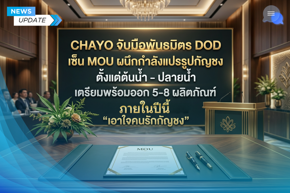 CHAYO จับมือพันธมิตร DOD เซ็น MOU ผนึกกำลังแปรรูปกัญชง ตั้งแต่ต้นน้ำ - ปลายน้ำ เตรียมพร้อมออก 5-8 ผลิตภัณฑ์ ภายในปีนี้ "เอาใจคนรักกัญชง"