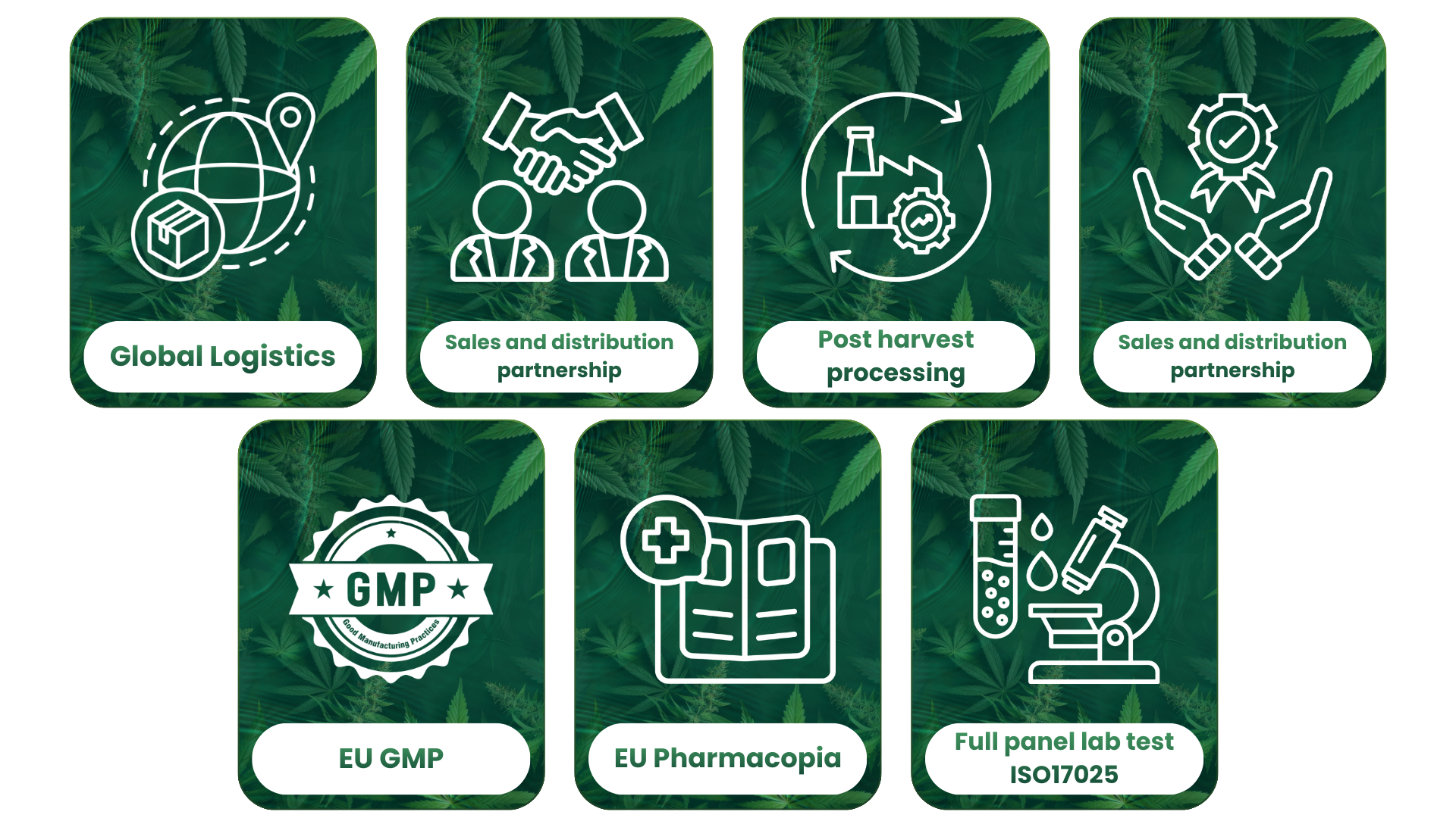 We work with our cultivation partners to deliver cannabis flowers to the global markets, with our full post harvest management services, logistics services, and marketing and distribution services. PACCAN is certified for GACP, GMP, GMP PIC/S, and EU GMP standards. We are a one-stop platform that includes full panel lab tests, COA issuance, quality management, irradiation, packaging, shipping, price estimates, and sales and distribution services. We provide consultations and services, and also enter into long-term offtake agreements with farms for global market commercialization. Contact us to discuss further details.